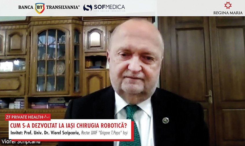 „Mi-am dorit întotdeauna ca şi acest segment al chirurgiei minim invazive, chirurgia robotică, să se dezvolte şi în ţara noastră, aşa cum s-a dezvoltat de la debutul ei în urmă cu peste 20 de ani în toate părţile lumii. Eu personal consider că este chirurgia viitorului, dar trebuie să fie aşezată pe nişte principii foarte bine puse la punct şi să urmeze un grafic de pregătire al celor care practică acest tip de chirurgie“, a spus la ZF Private Health prof. dr. Viorel Scripcariu, rectorul Universităţii de Medicină şi Farmacie „Grigore T. Popa“ Iaşi şi şef al clinicii I chirurgie oncologică din cadrul Institutului Regional de Oncologie Iaşi.